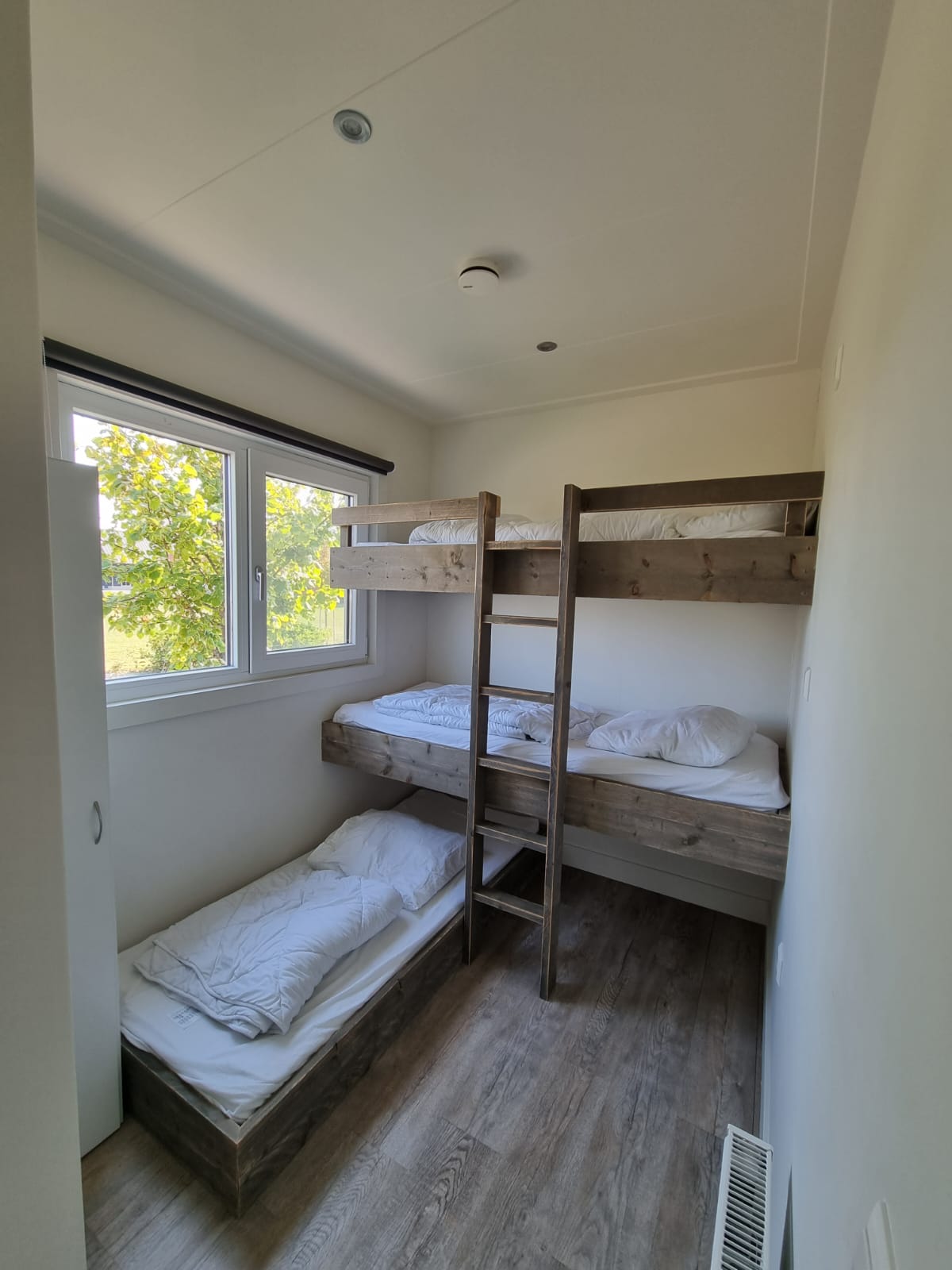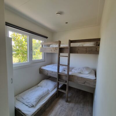 3 slaapkamers, 1 kamer 2 persoon bed, 1 kamer 2x 1 persoon bed, 1 kamer met 3x 1 persoon bed