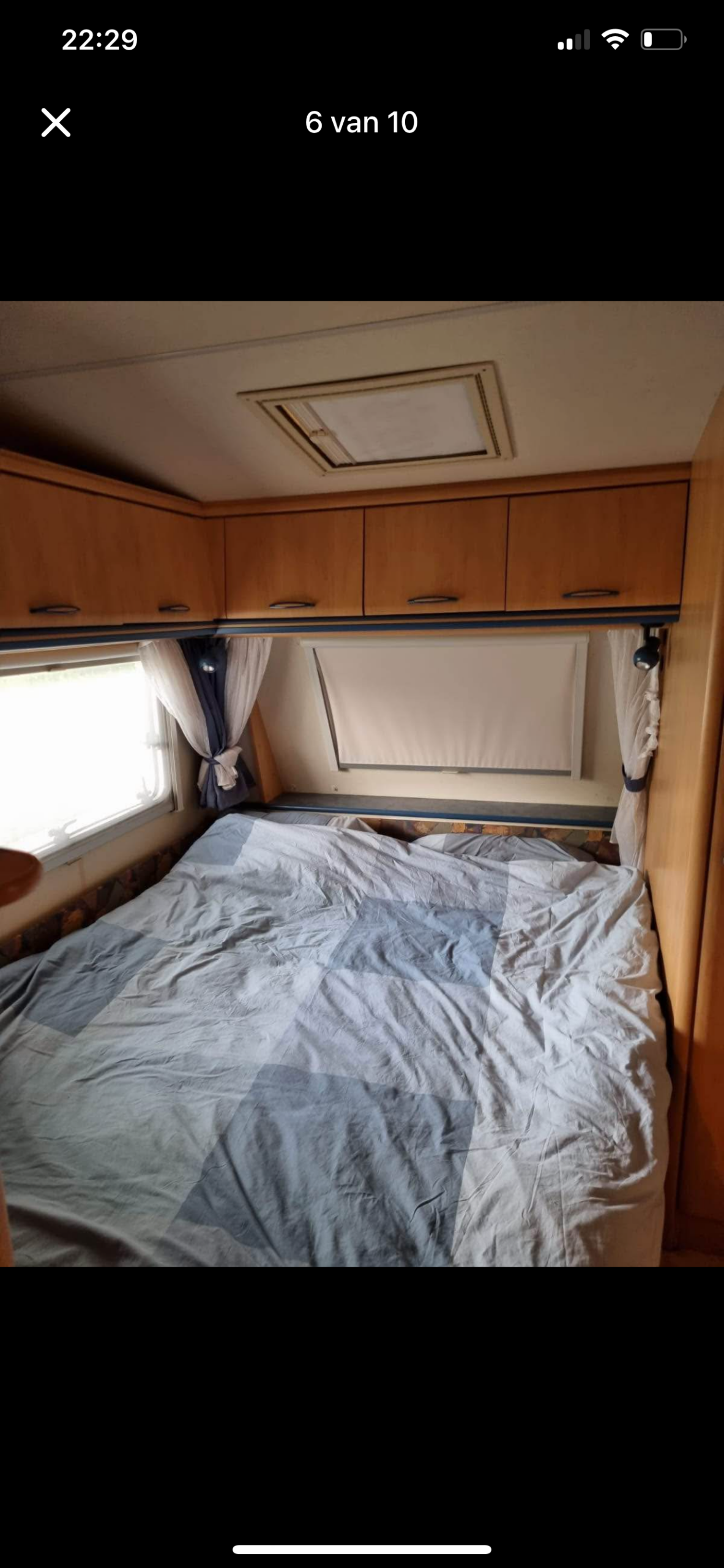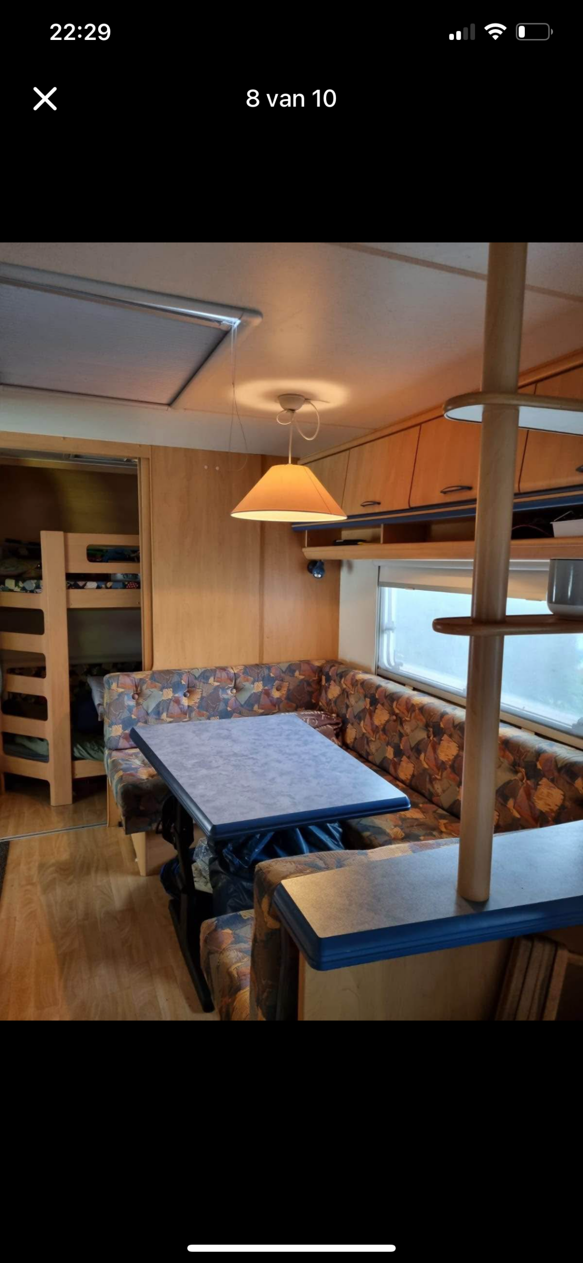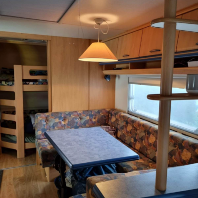 In de caravan zijn 6 slaapplaatsen (stapelbed voor kinderen en 2x een 2-persoons bed). Naast de caravan is ruimte voor het opzetten van een tent. De caravan staat dichtbij de toiletten en douches.