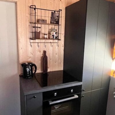Schuur: magnetron, airfryer, koelkast, wasmachine, droger, kinderstoel.
