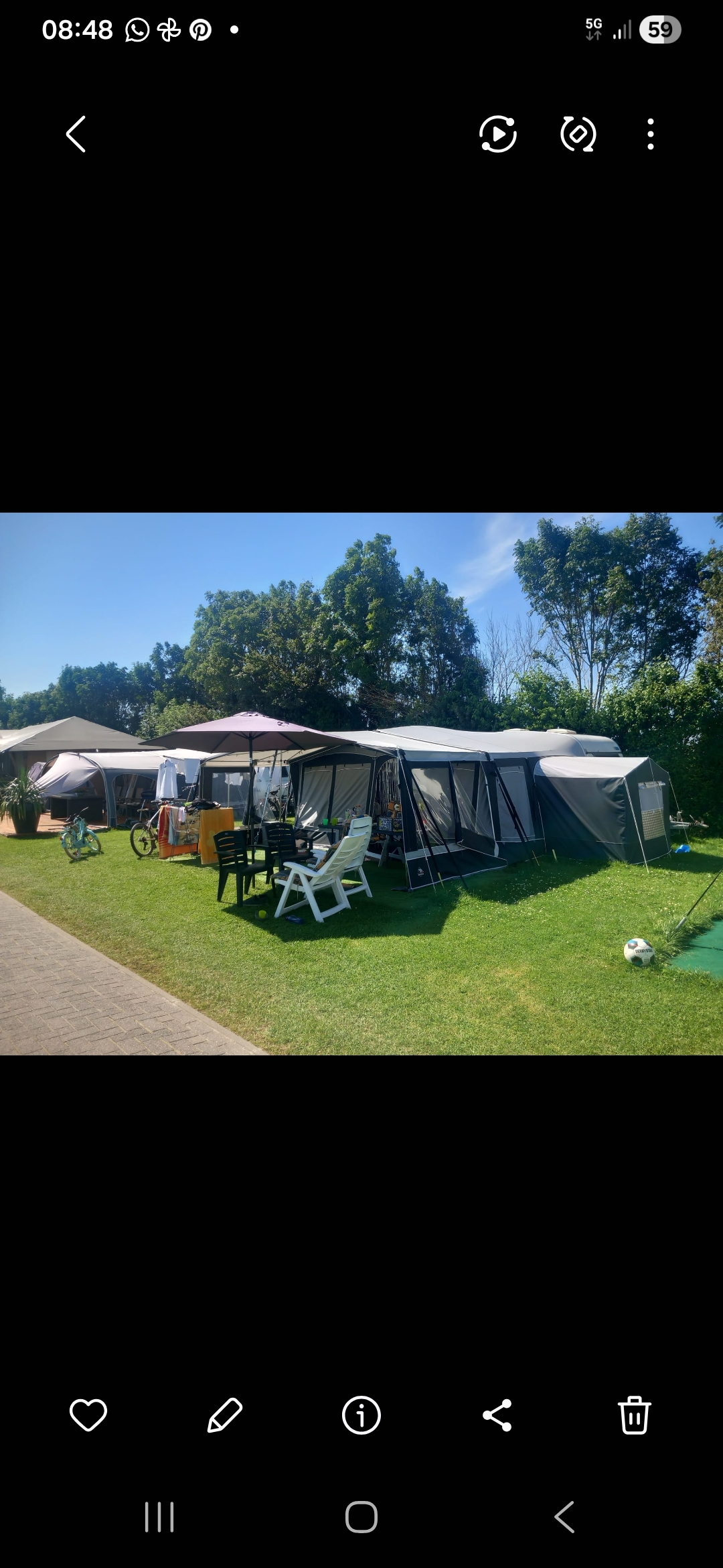het is een extra diepe voortent dus veel leefruimte, en nog een voorluifel met een voorwand. in voortent liggen vlonders.